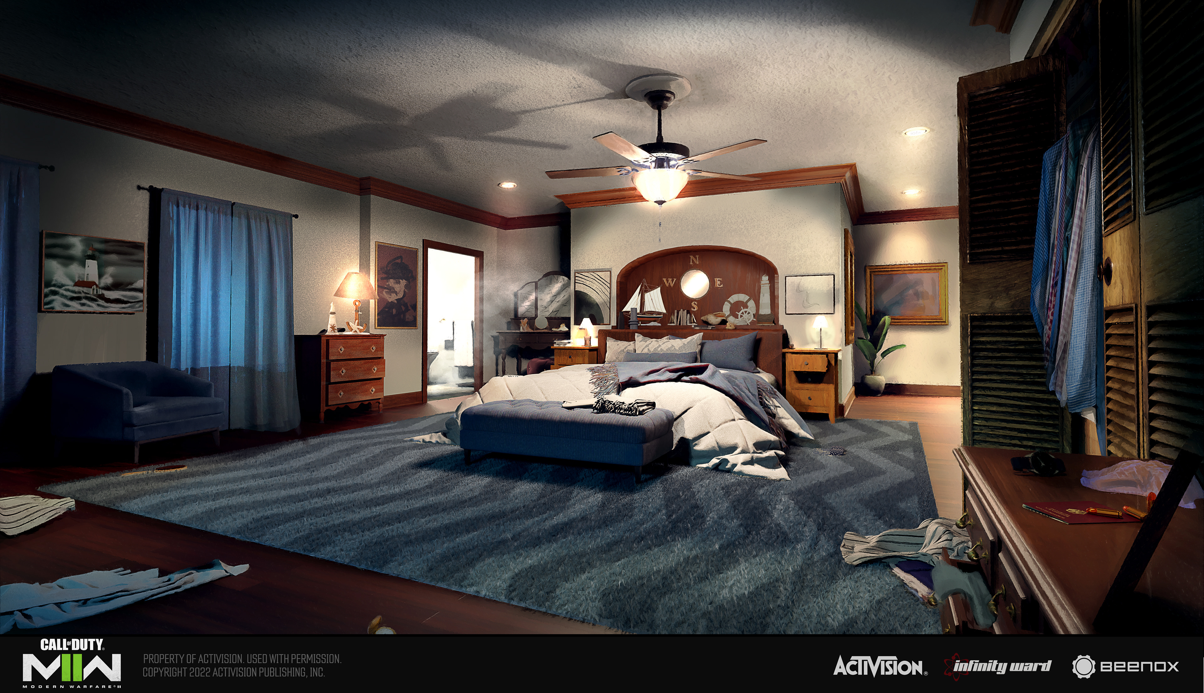 While working on MWII I was tasked with the look development of Las Almas , I was given ownership of the U.S border crossing, our goal was to hint at a bigger narrative that was ultimately reflected in the campaign and to have the warm and cools of the exterior and interior compliment one another.